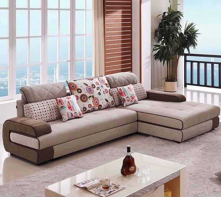 Double layered cushioned sectional sofa
